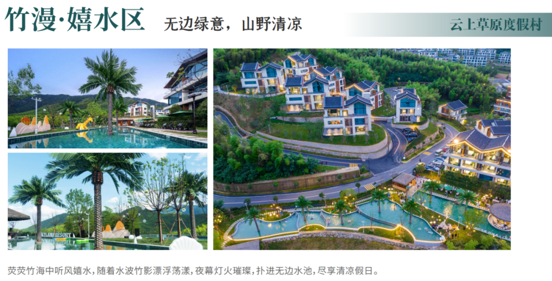 云上草原国际山地旅游度假区,位于浙江安吉山川乡,占地约6.2平方公里,总投资逾60亿元。项目深入践行“绿水青山就是金山银山、冰天雪地也是金山银山”的发展理念,利用海拔1168米的稀缺高山资源,建设成高山草原(星空滑雪场)、悬崖心跳乐园、云上仙侠镇、云上草原度假村、熊猫部落探险乐园、七星谷漂流六大板块内容为游客带来“春赏花、夏避暑、秋登山、冬滑雪”的高山四季度假全体验,造就了“云上一天 草原四季”的独特美域。