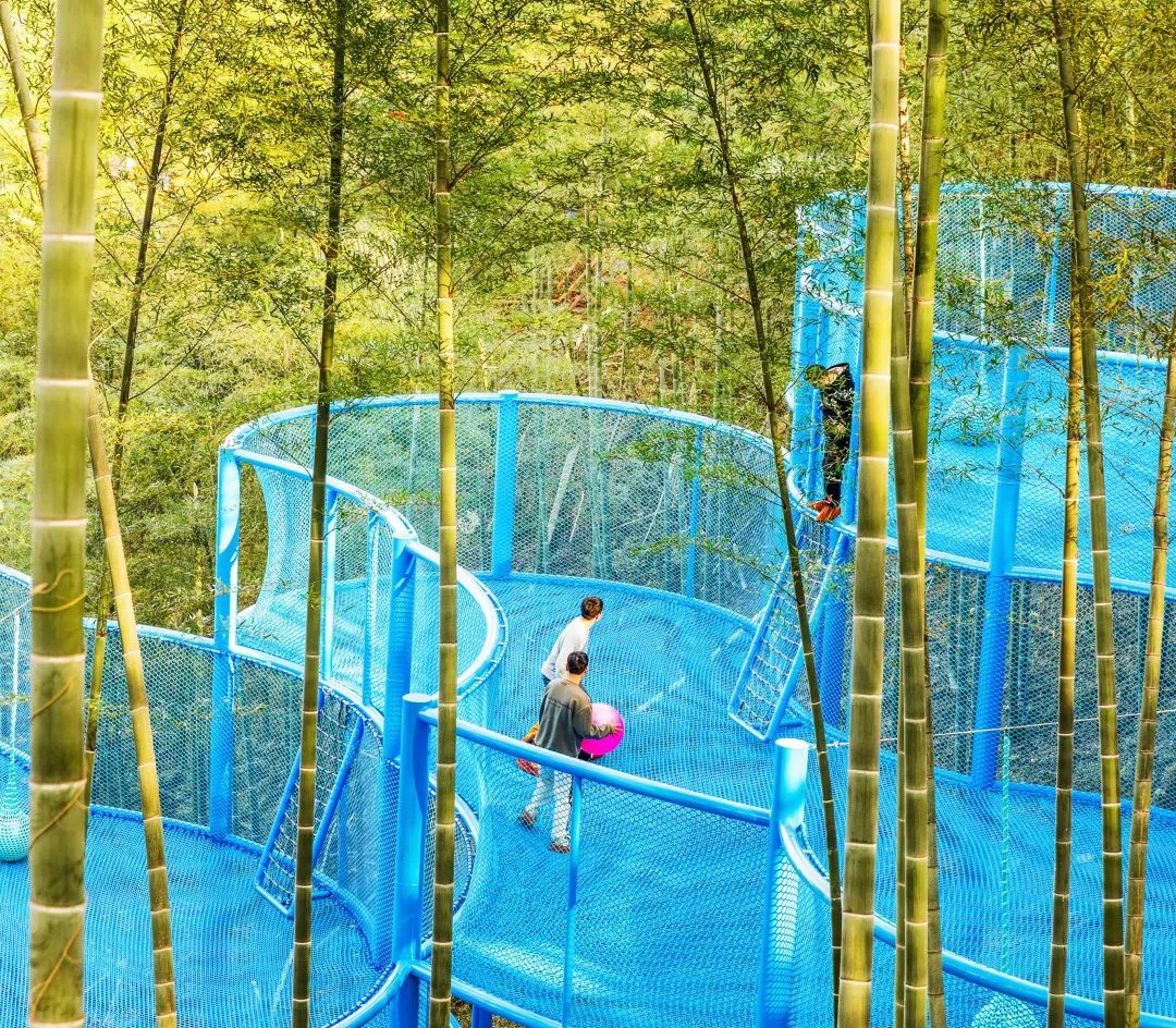 和小朋友在竹海中旋转跳跃,真的超减压!
