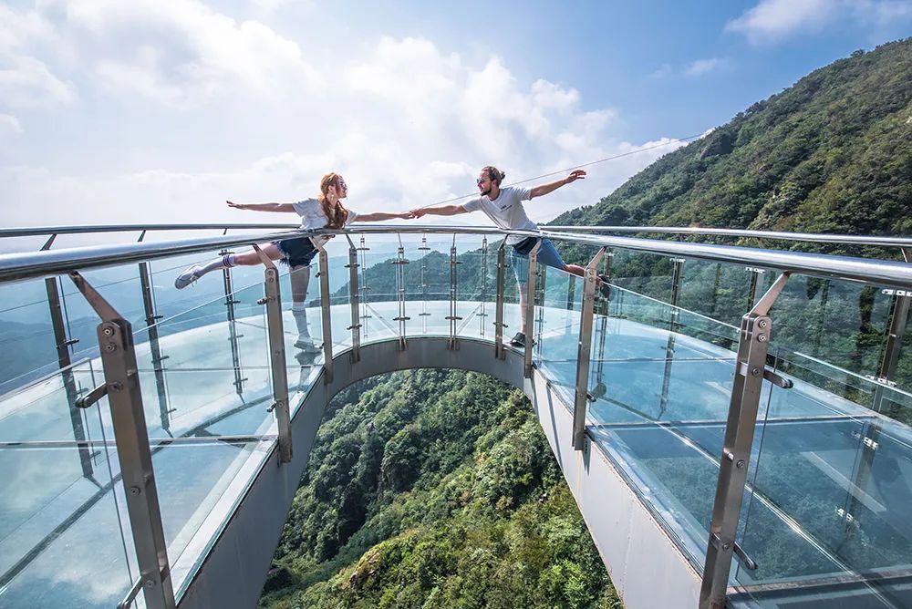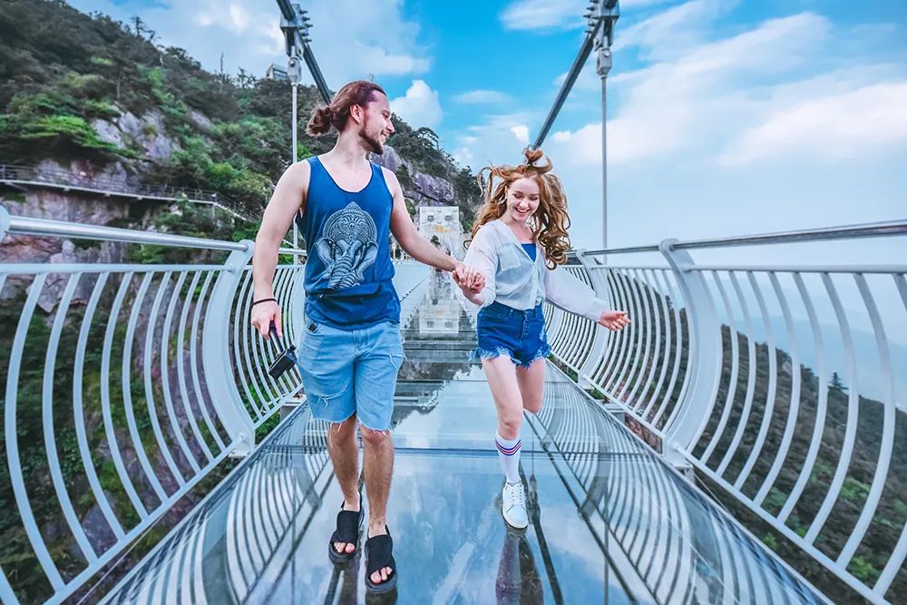 全长82米,全透明玻璃桥身,行走其间如同凌空漫步、踏云破雾。