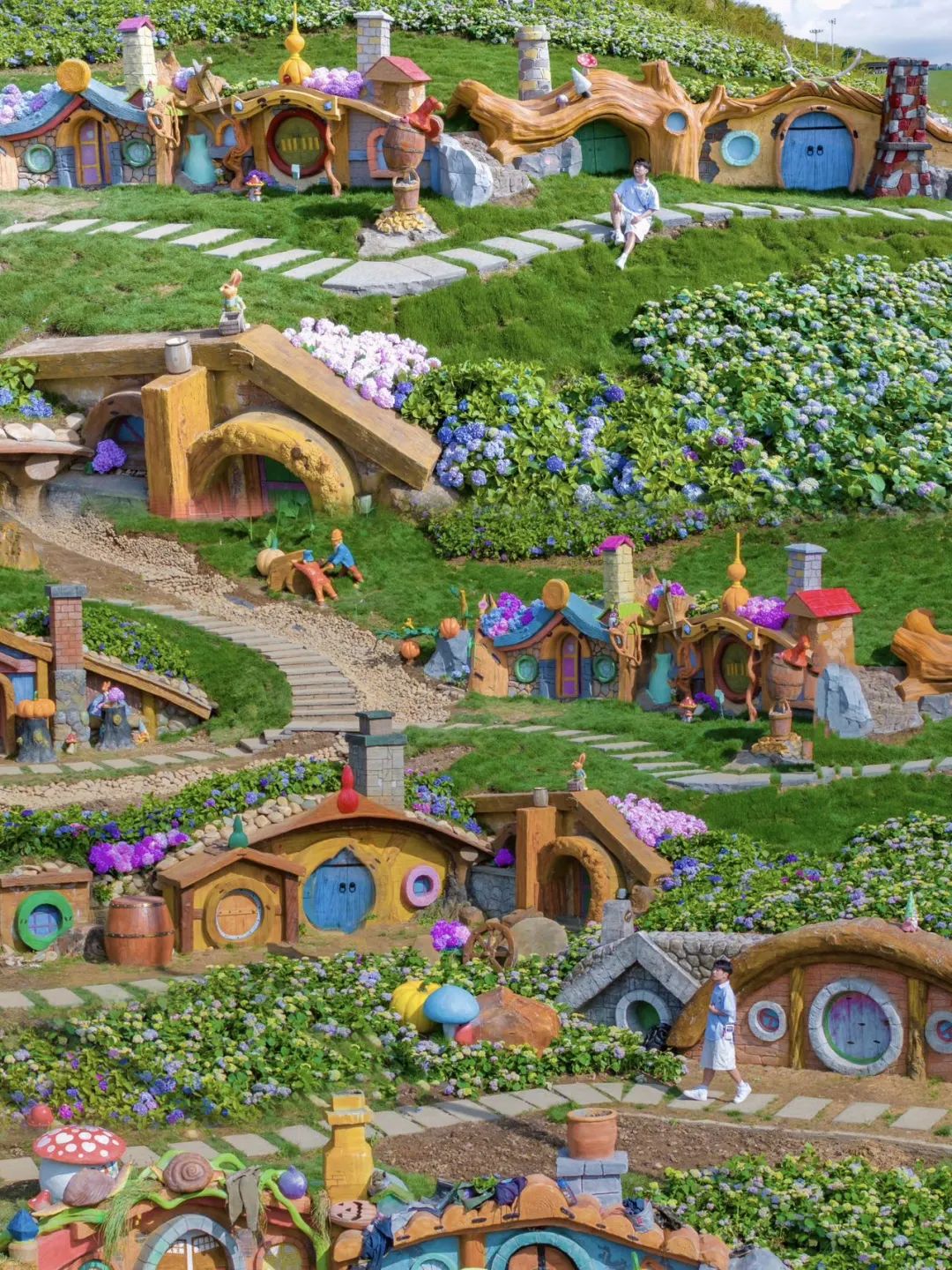 高山草原:彩虹滑草,云中部落,无动力探险,矮脚马乐园,羊驼乐园,霍比特小镇,云端飞车,有轨滑草,射箭,坑爹过山车,气泡枪;