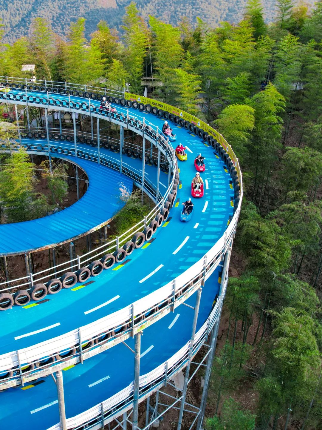 从七彩滑道上飞速而下,尽情享受速度与乐趣。