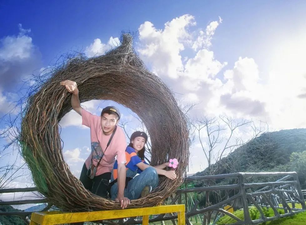 造型别致,视野开阔,由错综复杂的树藤编制而成,不止是游客们可稍作休整的地方,也是鸟儿们停留的“家园”。远眺便是山、河、路、屋,美不胜收!