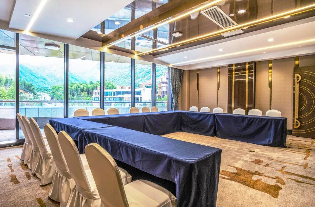 秉持独特生态居住理念,尽享自然氛围,同时提供圆桌中餐、自助餐、会议室、酒吧、健身房等配套服务。
