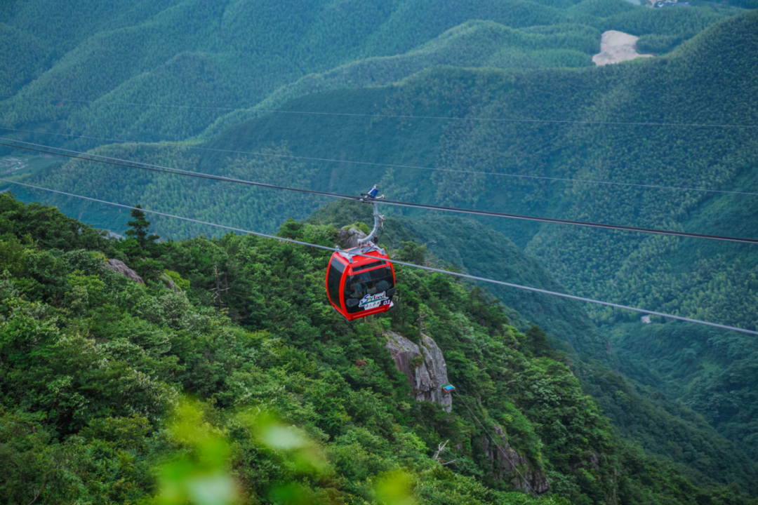 斜长2466米,垂直落差807.5米,是浙北地区最长的客运索道群,沿途设立支架26座,设计运行速度6米每秒,每小时单向运量可达1500人。