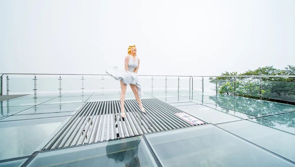 位于悬崖乐园南端最高点,穿越云海到达玻璃观光平台,如神仙般小憩于此,拥抱云海与山。美丽的“梦露女士”雕像在此微笑迎客,别忘了穿上漂亮的裙子,站在“梦露”身边,摆出撩人的经典姿势,定能成为最亮丽的风景线。