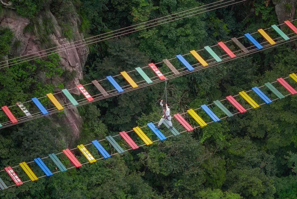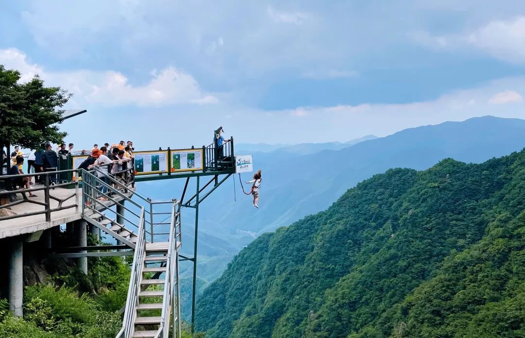 云中漫道旁的新项目——窝囊版蹦极,安全感10000%!纵身一跃,与独特的悬崖风景来一个“亲密接触”。