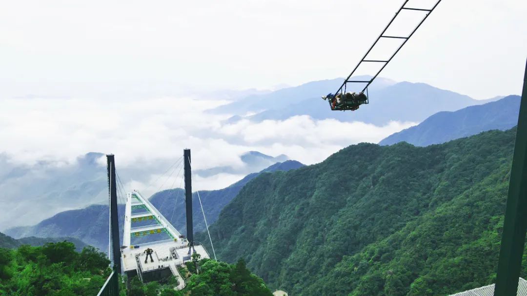 临崖而建、荡于1100米山巅的悬崖秋千,全新升级为悬崖秋千群!原双人悬崖秋千旁新增1个10米单人秋千、2个12米双人秋千,原单人悬崖秋千4米杆升级为6米,8座秋千一起带你们上天!