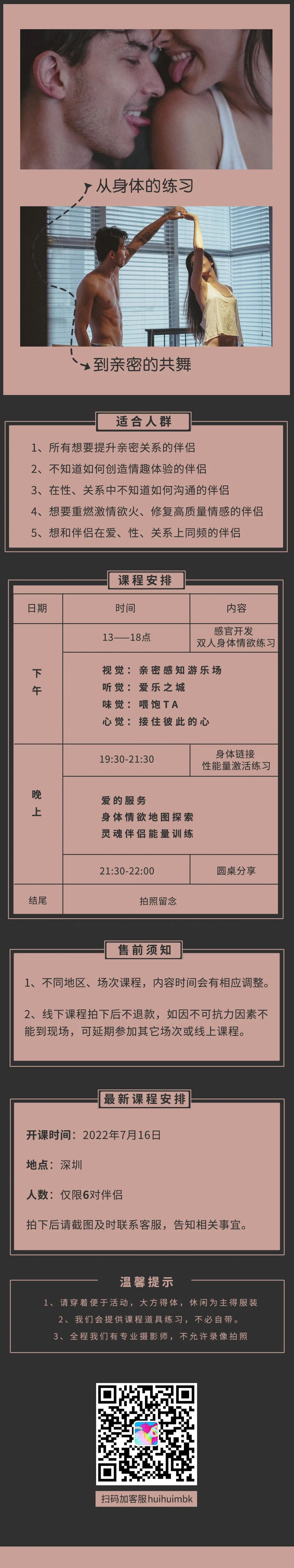 你是不是跃跃欲试,已经在寻找下一场的报名链接?由于某些原因,我们决定先暂停前戏1.0,急不可耐的进入专为伴侣设计的前戏2.0双人性亲密工作坊(仅限6对伴侣)。