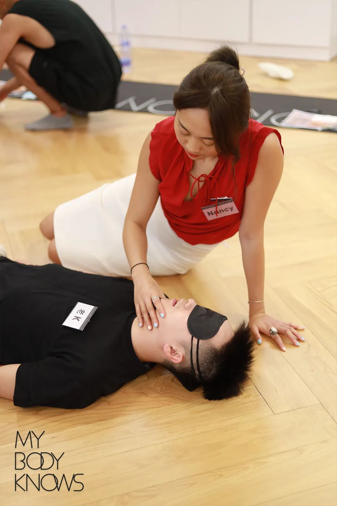 在和学员互动的环节中,我发现自己其实会更喜欢轻松舒适的氛围,比较喜欢被温柔的对待,这是身体告诉我的信息。我印象深刻的是有一个小姐姐温柔的抚摸我,然后我不自觉的想去和她牵手,我觉得这个过程就蛮温暖的虽然我们并不认识,没什么精神交流,但是通过肢体接触也会有一个温暖舒服的感觉,我会记住当下的感受。
