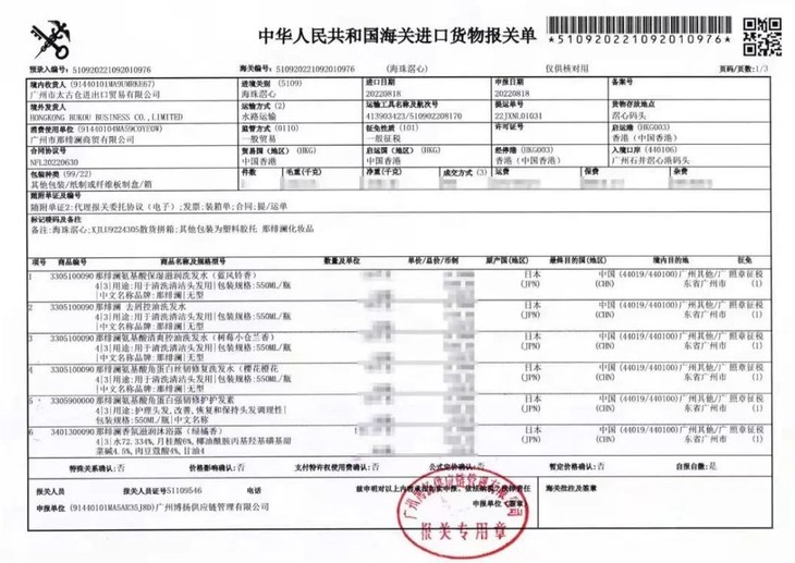 每一瓶都是日本原装进口,报关单给家人们摆在这,安心用!