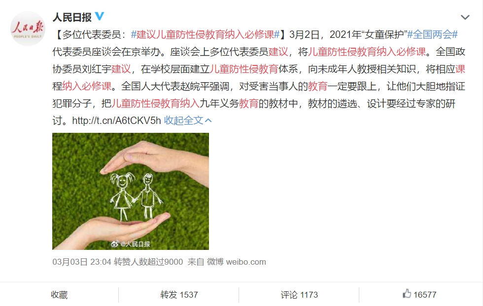 也是在那之后,「儿童防xing侵教育纳入必修课」的提案开始出现。