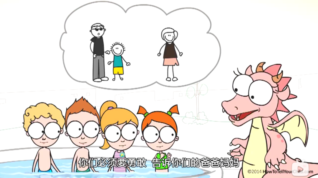 如果有人触碰你们的隐私部位,或者叫你们触碰其他人的隐私部位,叫作「触碰警报」。