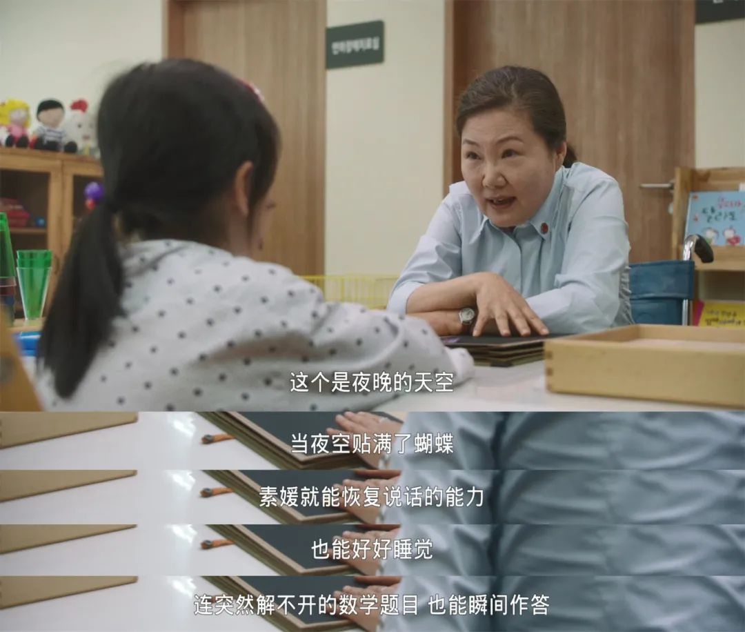 那位残疾人老师,帮助着素媛渐渐开口说话,树立信心,重返校园。