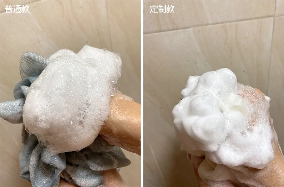 给大家看看,我家以前的沐浴球和菜菜定制的,打出来的泡沫,差别不是一般的大:
