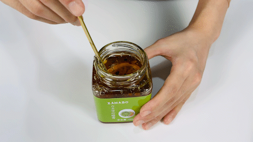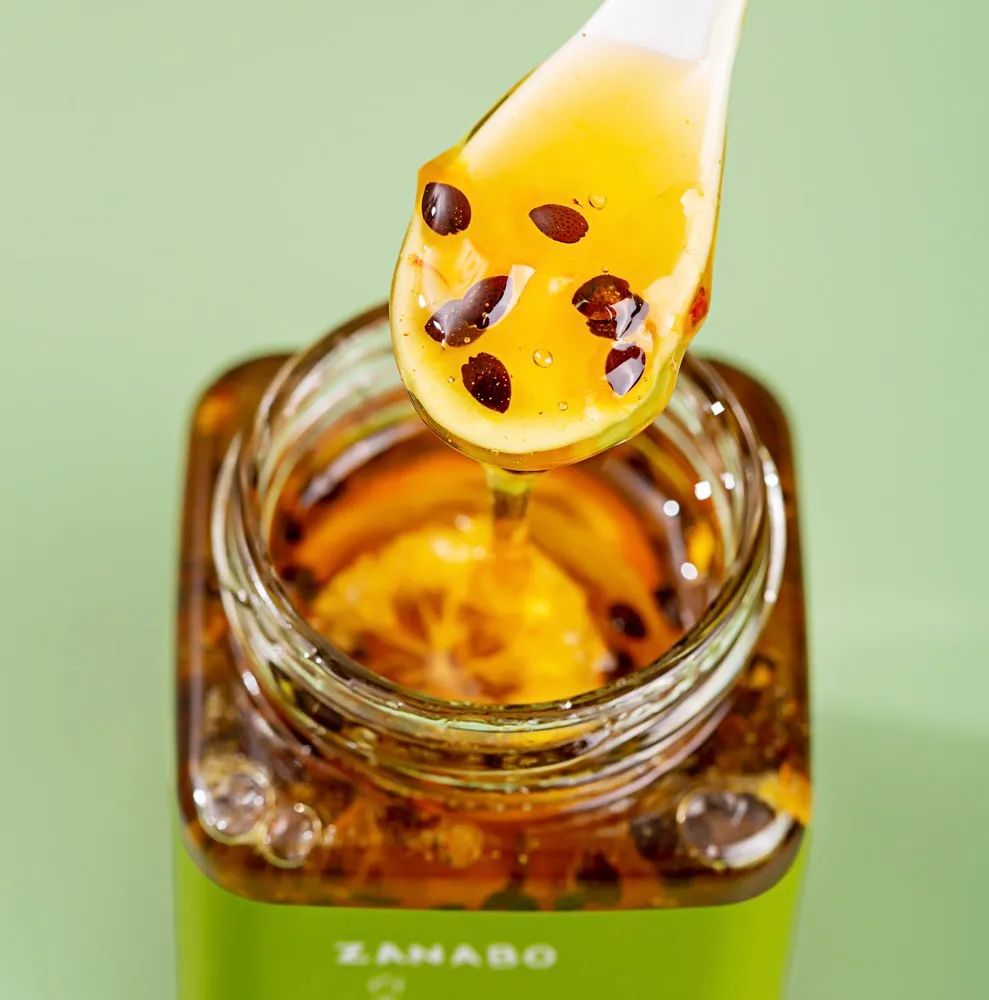 挖起来满满一大勺,可以看到每一个被蜂蜜浸透的柠檬片和实打实的无数颗百香果籽,在散发着诱人的光泽感。