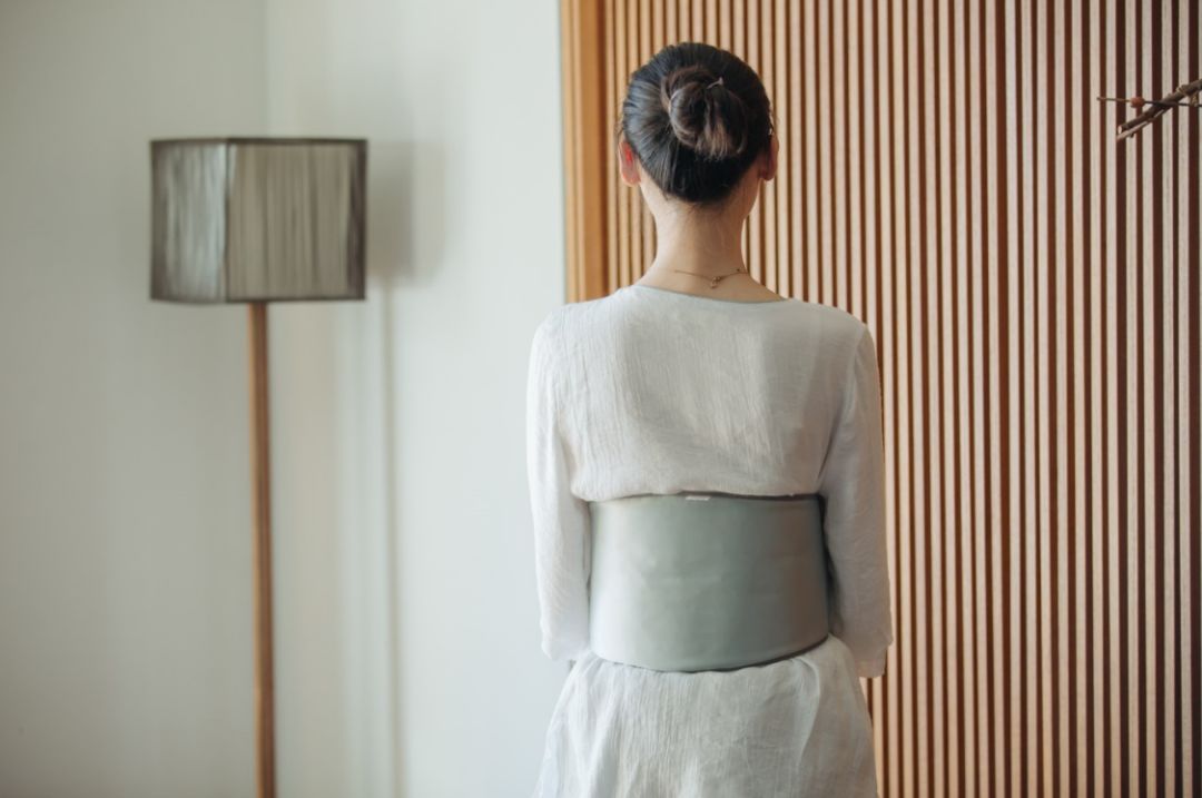 护腰环抱腰部,竖放时紧贴脊柱,前后采用粘贴设计,无论腰围大小,腰腹部都可以很好的得到呵护。
