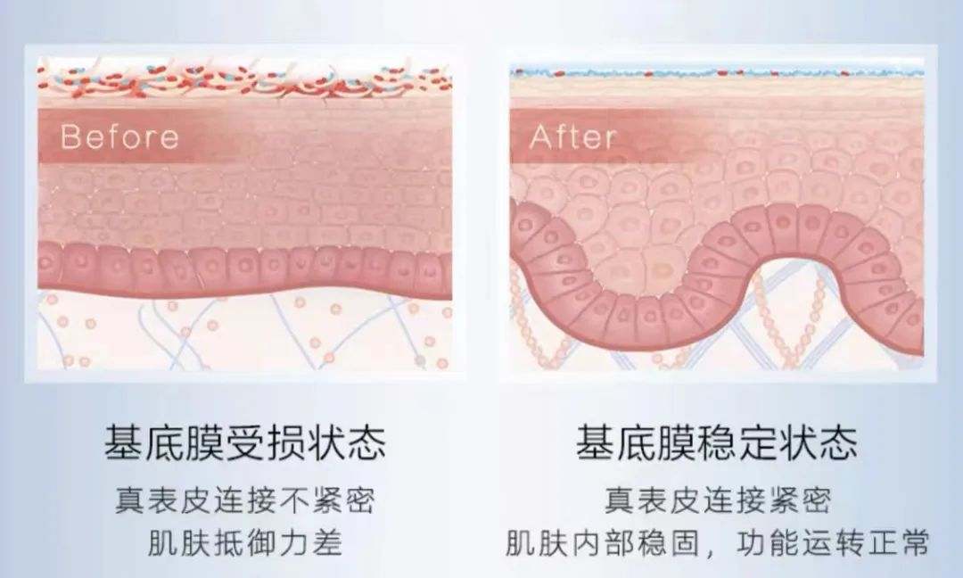 串珠素随着年龄的上升,在皮肤里面的含量直线下降,直接或者间接影响皮肤的光泽度、皱纹、含水量等指标。这俩成分,就是针对基底膜修护的。