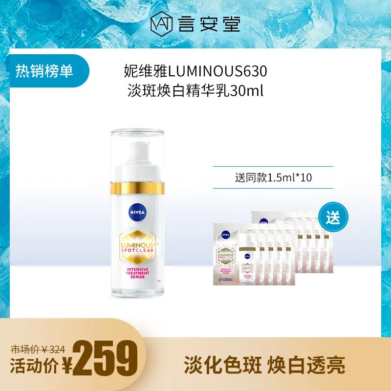 这就要,再次请到我们抑制酪氨酸酶的大拿——Luminous 630登场了,含有630的产品,必然是妮维雅630淡斑焕白精华。