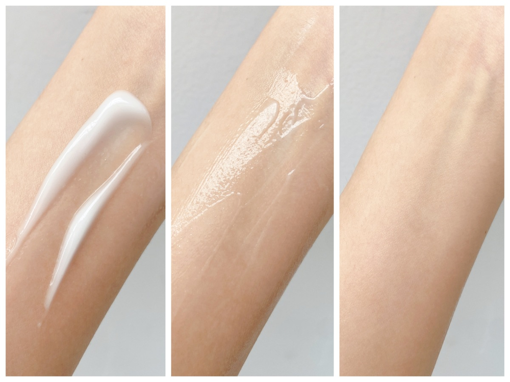 肤感上是清爽凝乳质地,涂抹时有“化水”的肤感,“吸收感”呈现迅速,后续叠加也可。