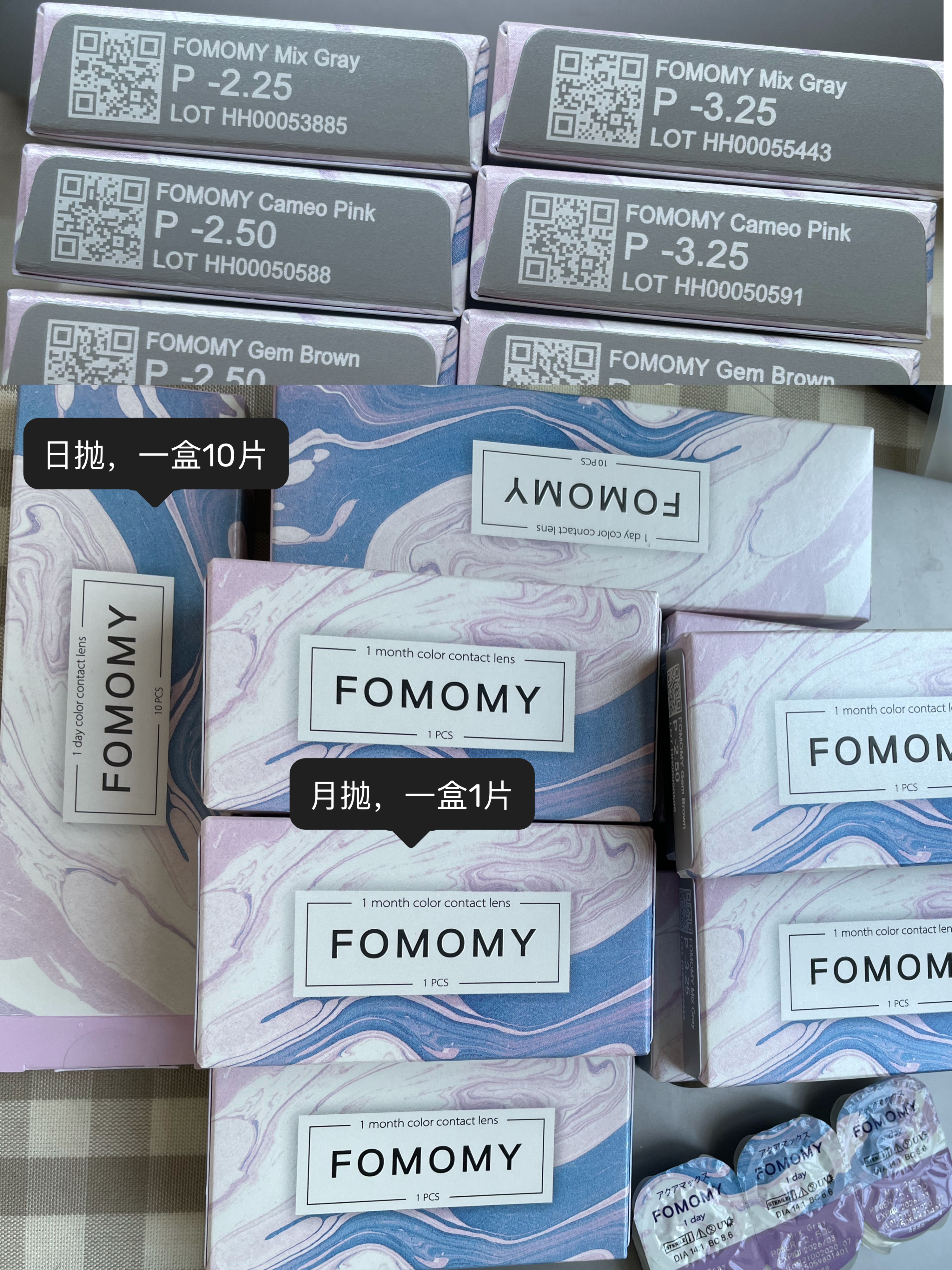 我终于收到Fomomy月抛啦!附日抛花色对比!