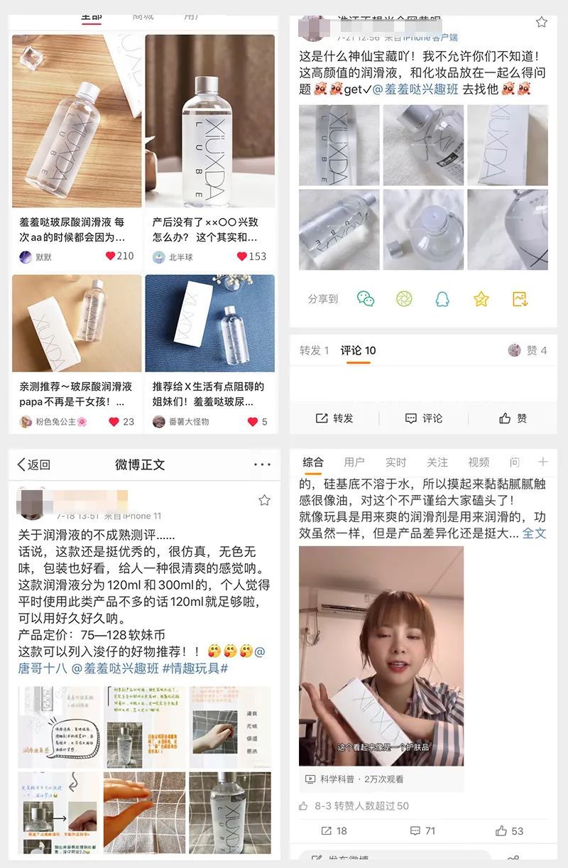 羞羞哒玻尿酸润滑液则体现出很强的水溶性。