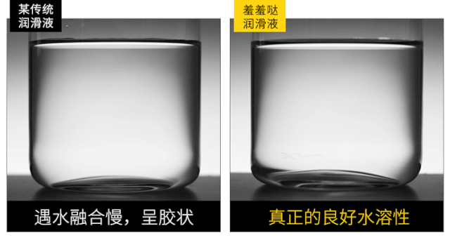 传统水溶性润滑液与羞羞哒润滑液水溶性对比测试: