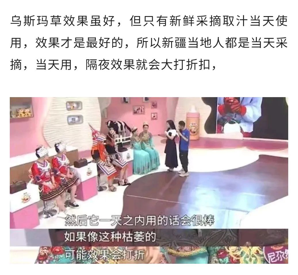 乌斯玛草效果虽好,但只有新鲜采摘取汁当天使用,效果才是最好的,所以新疆当地人都是当天采摘,当天用,隔夜效果就会大打折扣,