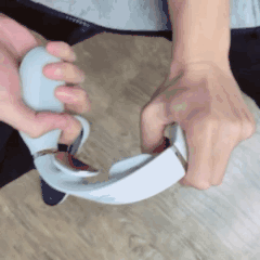 按摩仪乍一看就像个耳机,只有160g的重量。往脖子上一挂,软软的材质,紧贴脖子也没有任何异物感,一点负担都没有。放到脖子上,轻轻捶打按摩脖子,每一次按压都能直击颈椎两侧发木、酸痛的位置,每个地方都被按得恰到好处,酥酥麻麻热热的,很舒服。15分钟的按摩简直爽上天,而且一点不输专业的按摩,效果堪比泰式马杀鸡。