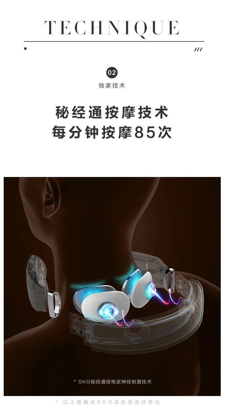 你可别小巧TA了,帮大查了一下,SKG最厉害的就是以中医经络理论为基础,利用全新的秘经通按摩技术,每分钟可以按摩85次。二代按摩仪在按摩手法上进行了四大升级,4种舒爽,深度放松颈椎。