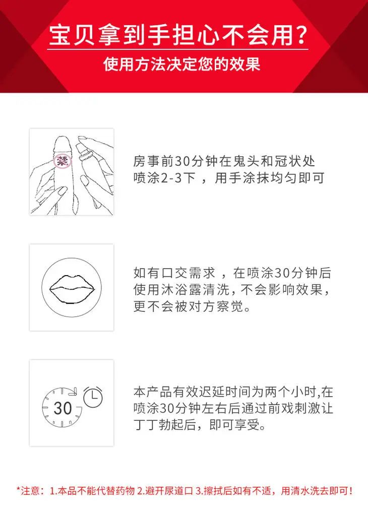 最简单直接的方式就是使用延时喷雾,很多用过延时产品的宝子都知道他们的厉害,让原本疲软的居居可以暂时变得持久坚挺。