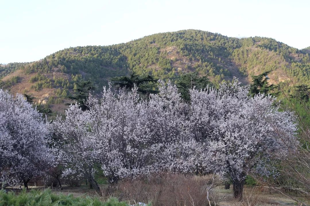 山中静谧,始终有好闻的松柏香,到了傍晚鸟叫声尤其更加欢悦起来,到处都有大山雀、沼泽山雀和黑头䴓的曲调,还有啄木鸟的笃笃声,坐在椅子上吃东西时,大山雀就离得近近的。二月兰刚刚冒出来,山桃花谢去,山中此时是山杏的时间。一下午就这么一直走啊走,直到走向黄昏暮色,路边忽然独独一棵老山杏,令人心里一动。
