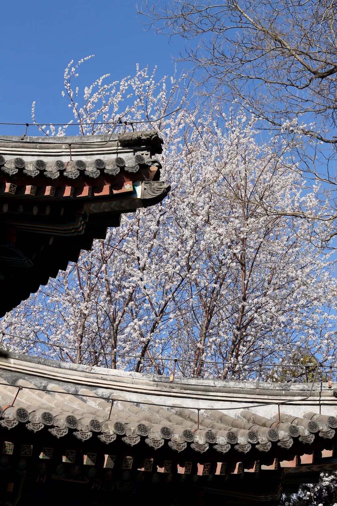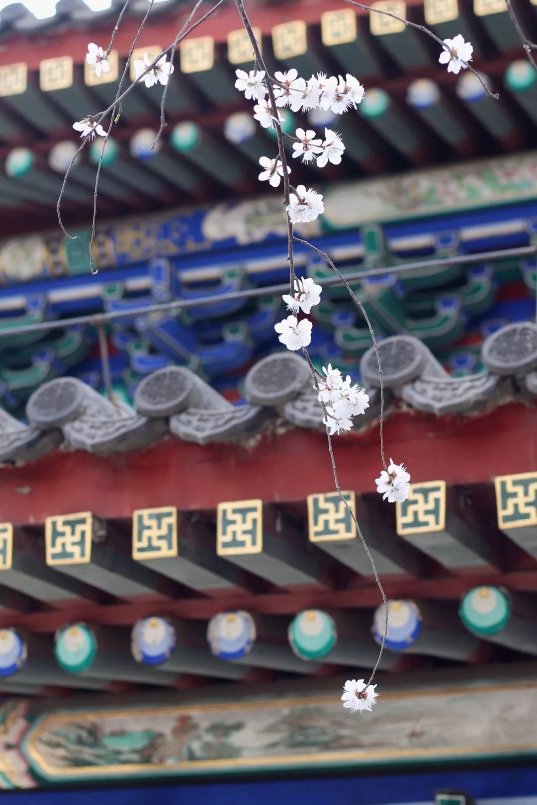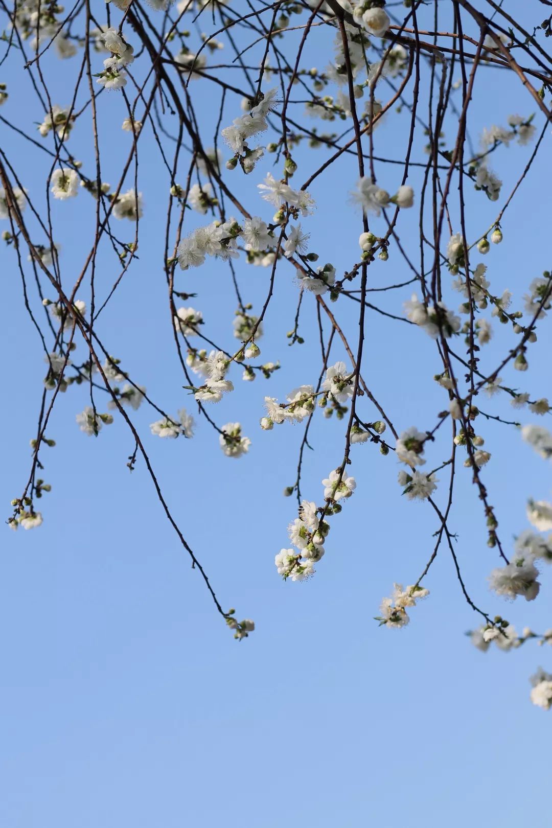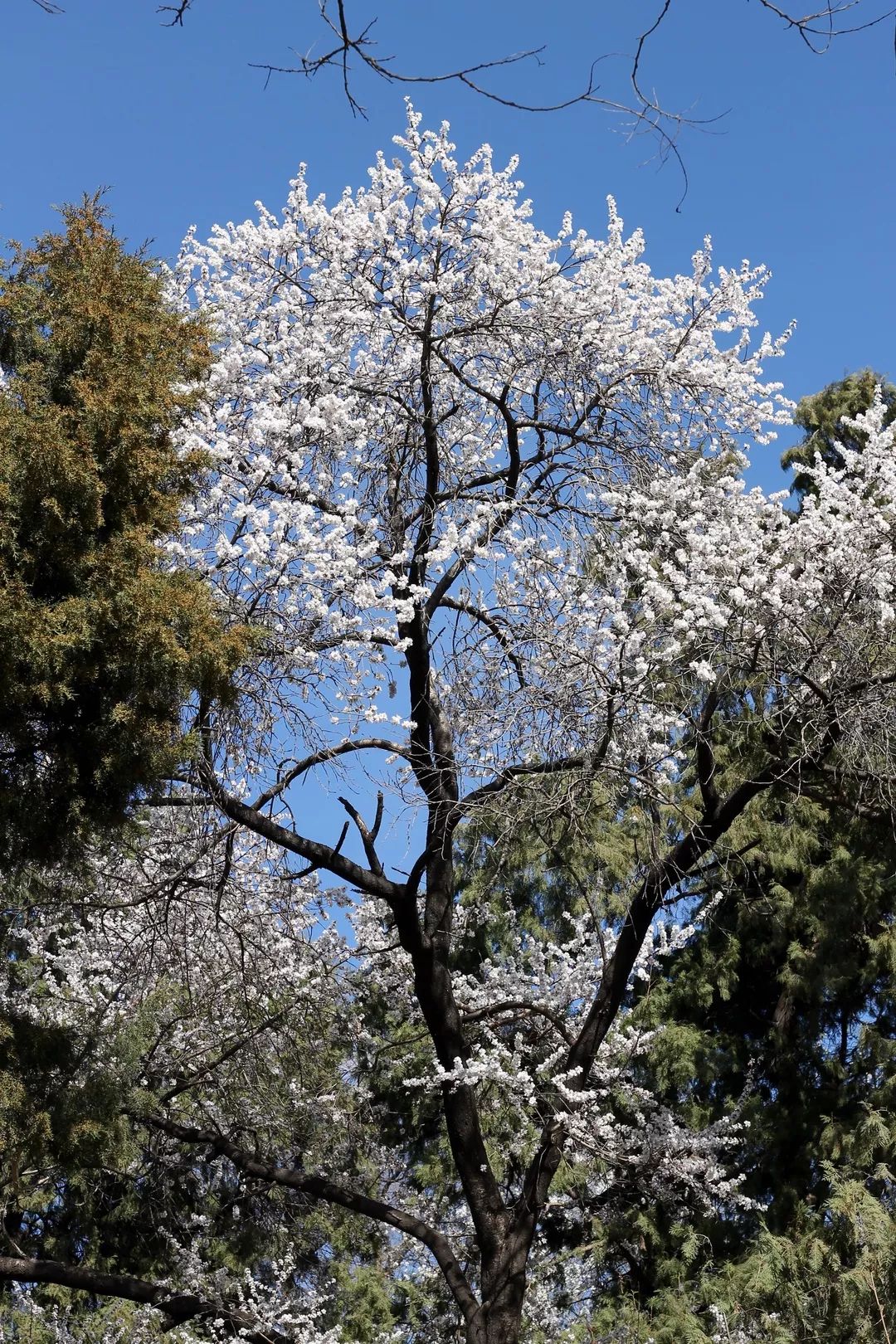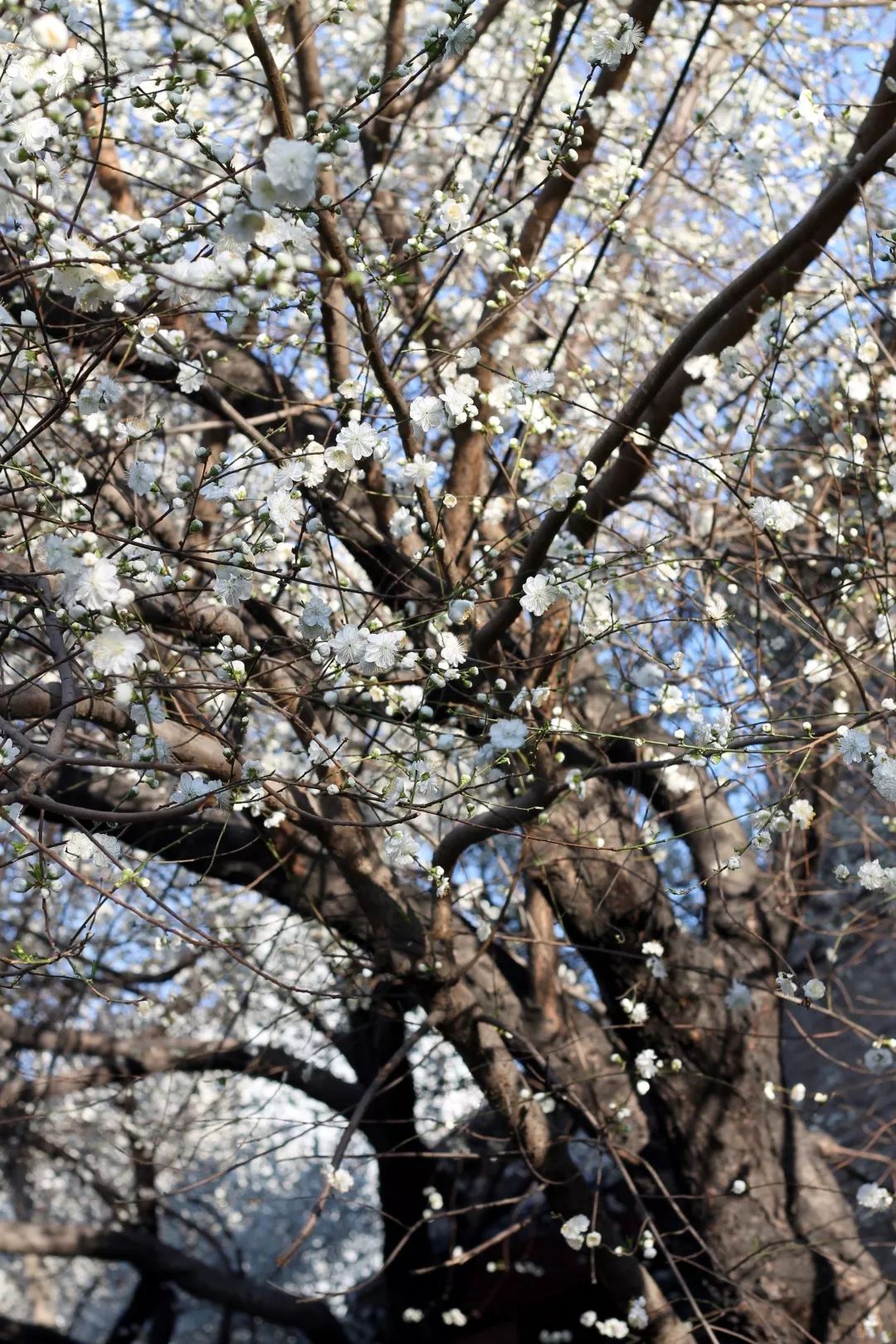 在我的手机备忘录里,还有一个今年无论如何要去看看的地方。天气晴好的一个周末,惦记着去了趟雍和宫,果然预测准确,北墙外的七棵白花山碧桃刚刚好初开花,莹白的花朵间,又有许多浑圆的小白花蕾,老树依傍着灰墙,4点多西晒的光照在枝头,风冷冷的,花枝荡漾飘柔,像是眼前有轻雪涌动。