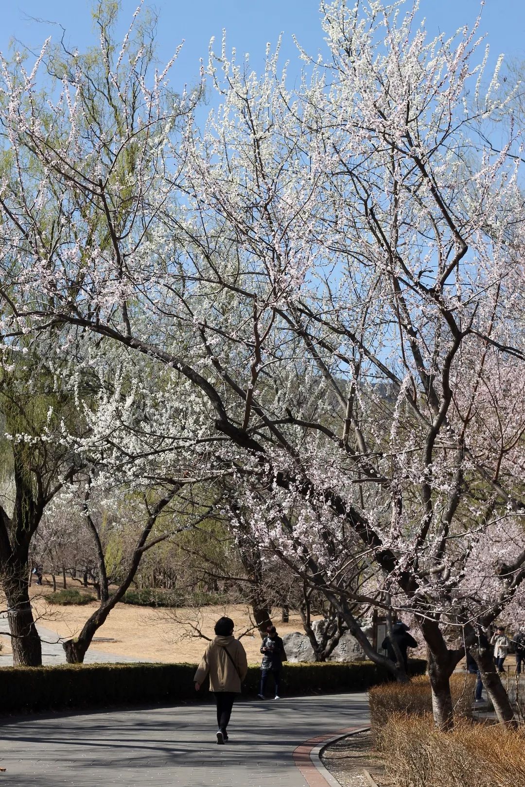 树真好呀,更何况是一棵开花的树,没有人会对它无动于衷,春风里来来往往的人都好看,都表情舒展神采奕奕,都仰着头,伸着手机与花合影,真是一小段被赋予轻度魔力的路。总之是让人感到珍惜的树,倒也不完全是因为它处在好看的宫墙外。不管长在哪里,这样有时间感的大树,都会让人在心里感念。