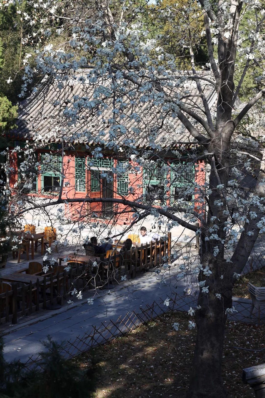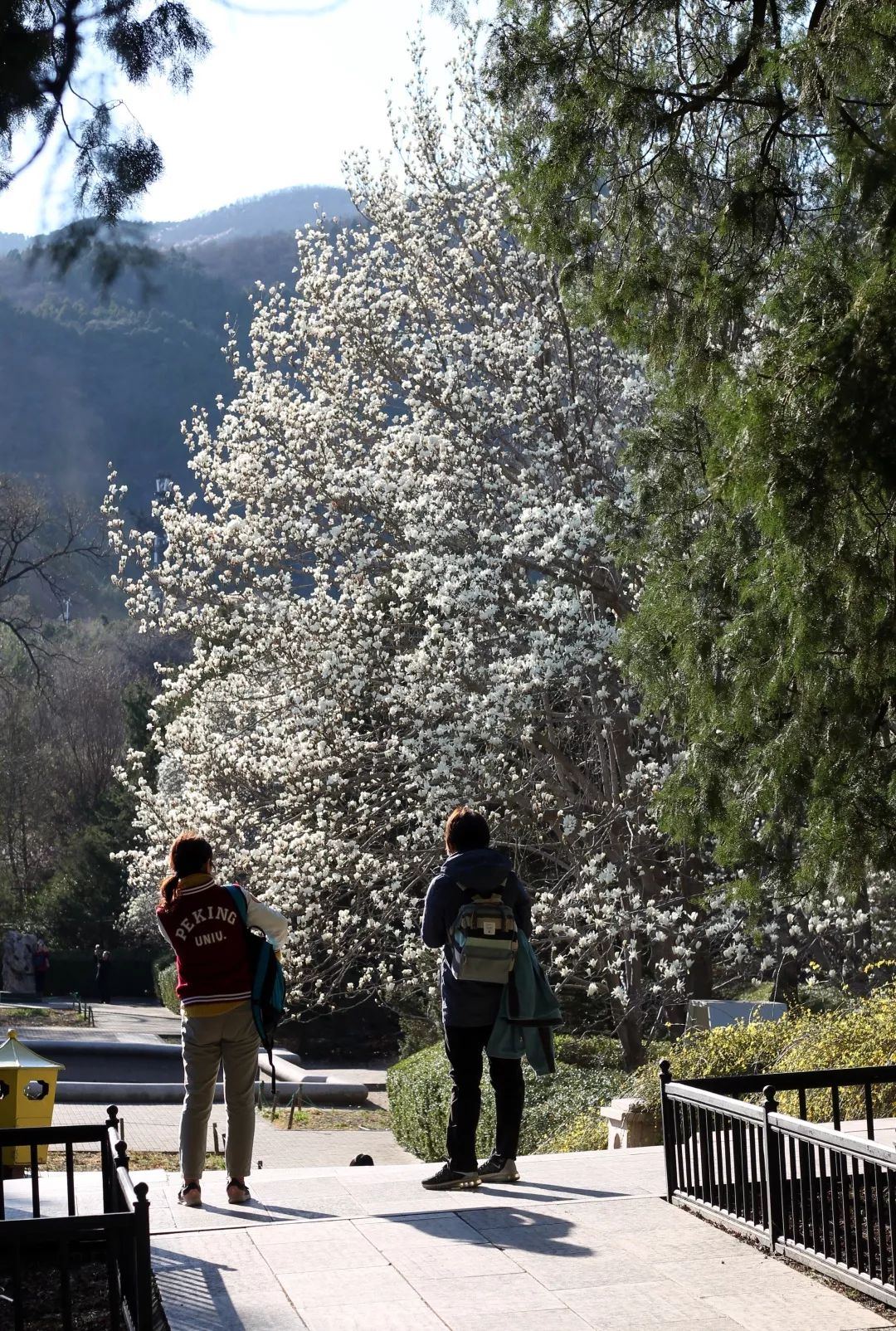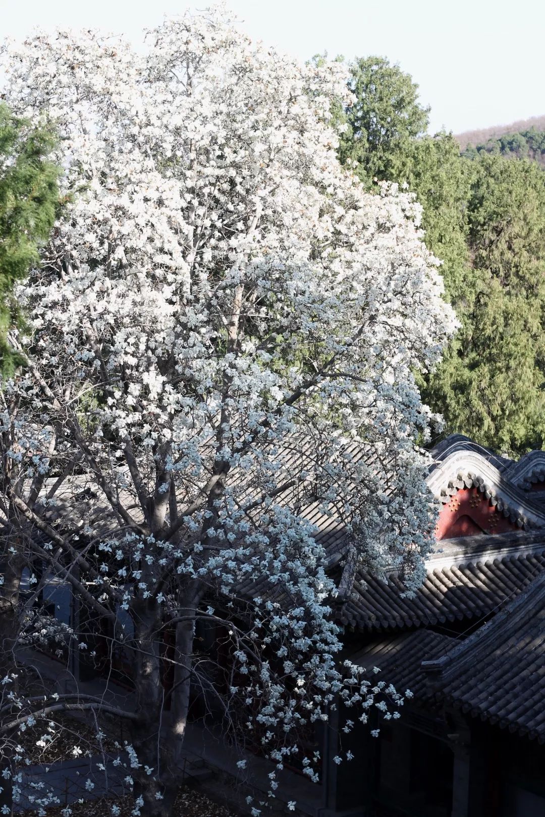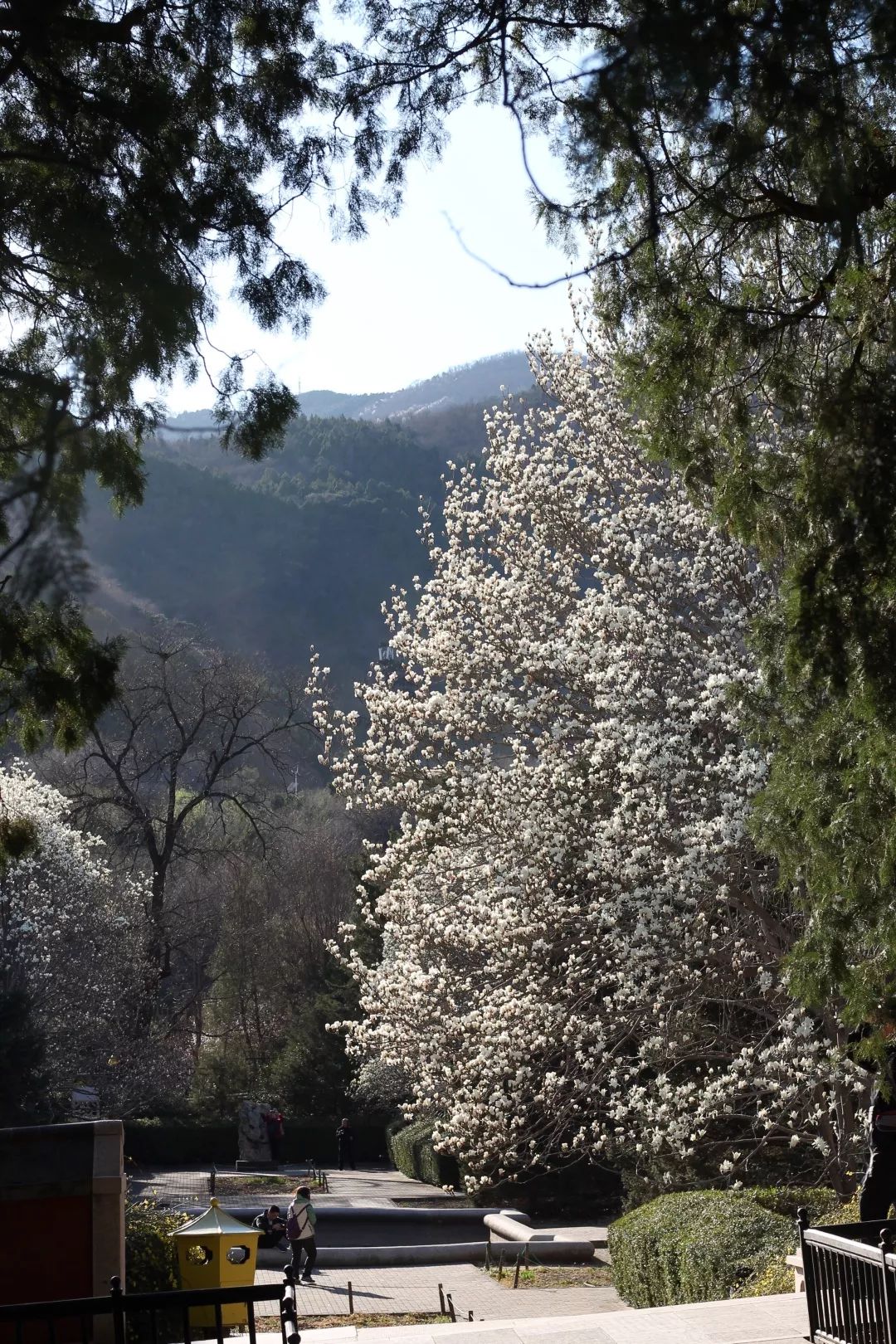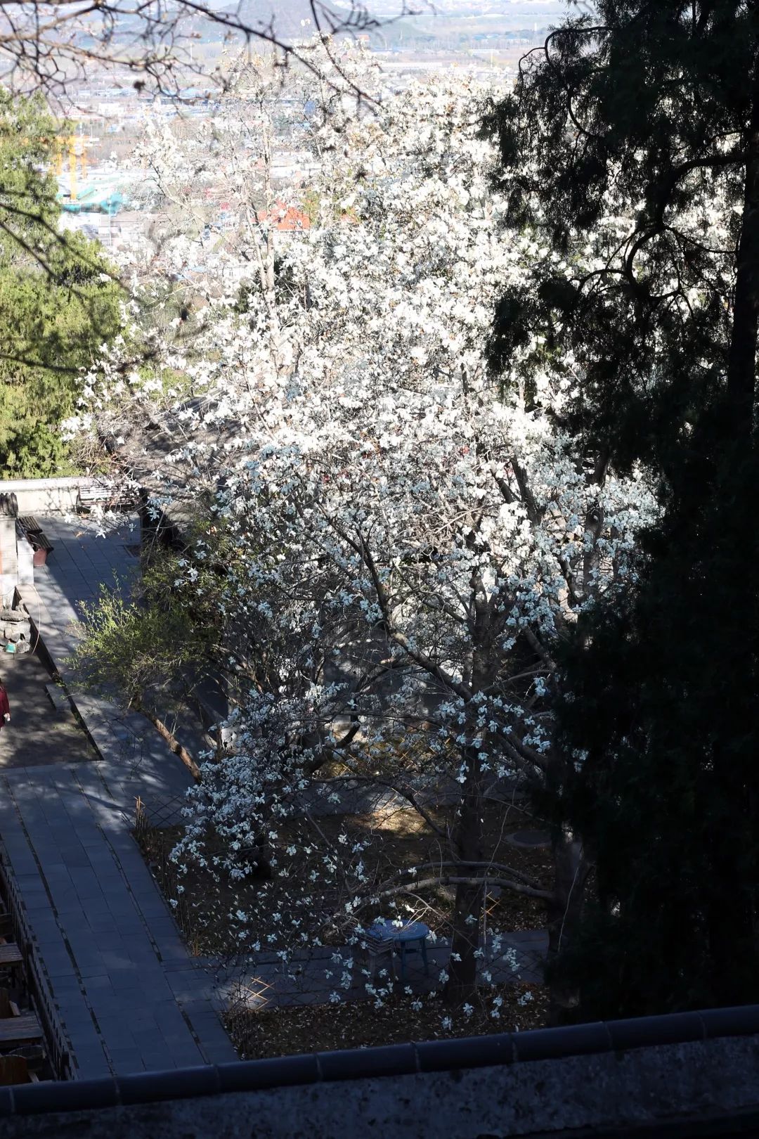 不过,几天之后,我仍然又跑去看香山玉华岫里的玉兰树。几年前也是春日行山,下山时无意中绕进玉华岫,精致的庭院,站在半山的环廊俯瞰院落中央几株高大挺秀的玉兰树,当时满枝白雪,香气浓郁。自此每逢早春,气温刚刚开始松动起来时,我都会在心里遥想一番这个四合的院落里高大的白玉兰。