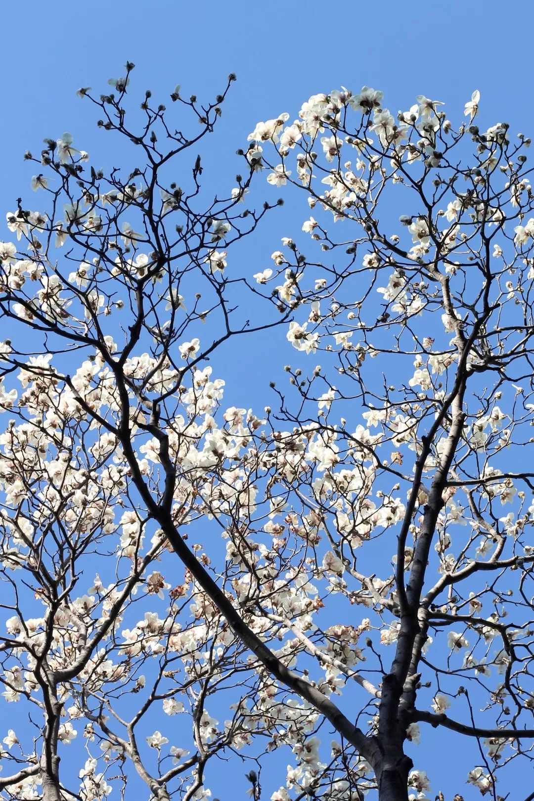 《百花历》里写二月(农历),“桃始夭,玉兰解”,“解”这个字用得太好了。尤其是当看到一棵如此令人震动的玉兰,拼尽全力开出一树繁花时。