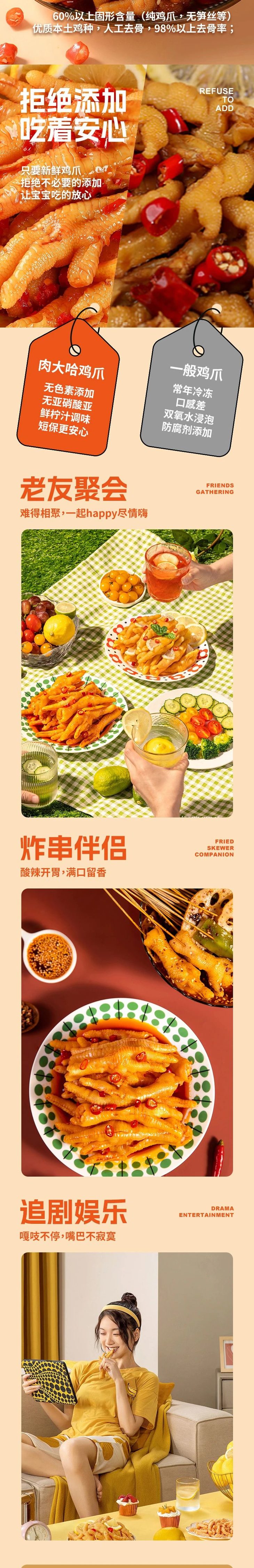 咱们家的这款鸡爪都是采用人工剔骨,Q弹爽滑,酸辣可口,而且没有骨头😁,大口啃着吃,真过瘾。🥳🥳🥳