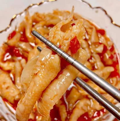 🐥满满的胶原蛋白,咬一口口感Q弹十足 每一根鸡爪都包裹着清爽酸辣的酱汁胶质十足满满的胶原蛋白口感Q弹十足咬上一口皮滑有嚼劲! 细嫩富有弹性酱汁的味道已完全浸入让人回味无穷!去骨连筋只要吃上一口根本就停不下来了~