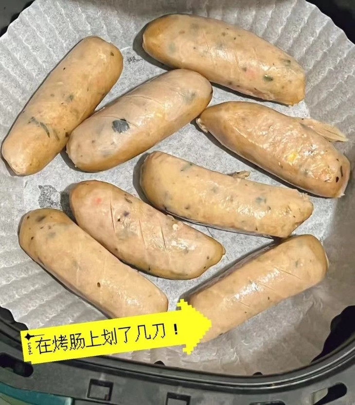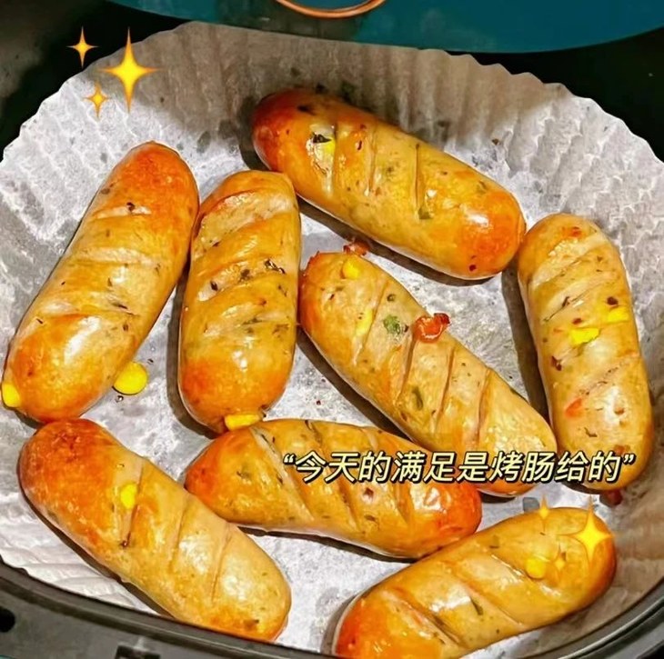 🍳将烹饪厨具调到180°C,烤制10-15分钟左右,中间翻动几次避免烤焦,一份美味鲜香的肉肠就烤好啦~这味道,绝了!