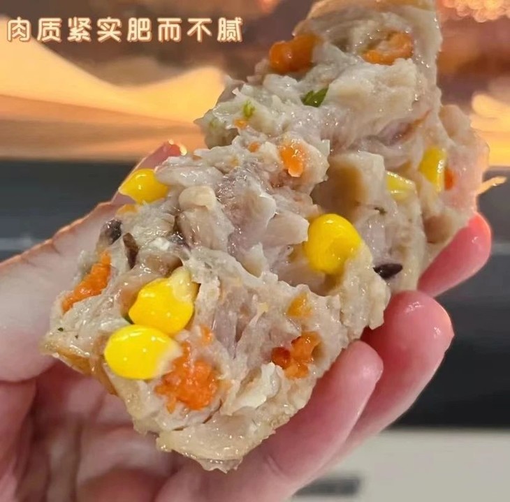 有姐妹反馈你们家的膳食肠有一点做的最好就是:荤素搭配,营养均衡❗纯肉的可能会腻得慌但加了蔬菜🥬就很舒服,里面的肉和玉米🌽香菇、胡萝卜🥕等蔬菜搭配起来口感特别好 纯肉+蔬菜的组合 热量也会比较低,减脂期管不住嘴的真的非常建议尝试哦👍🏻