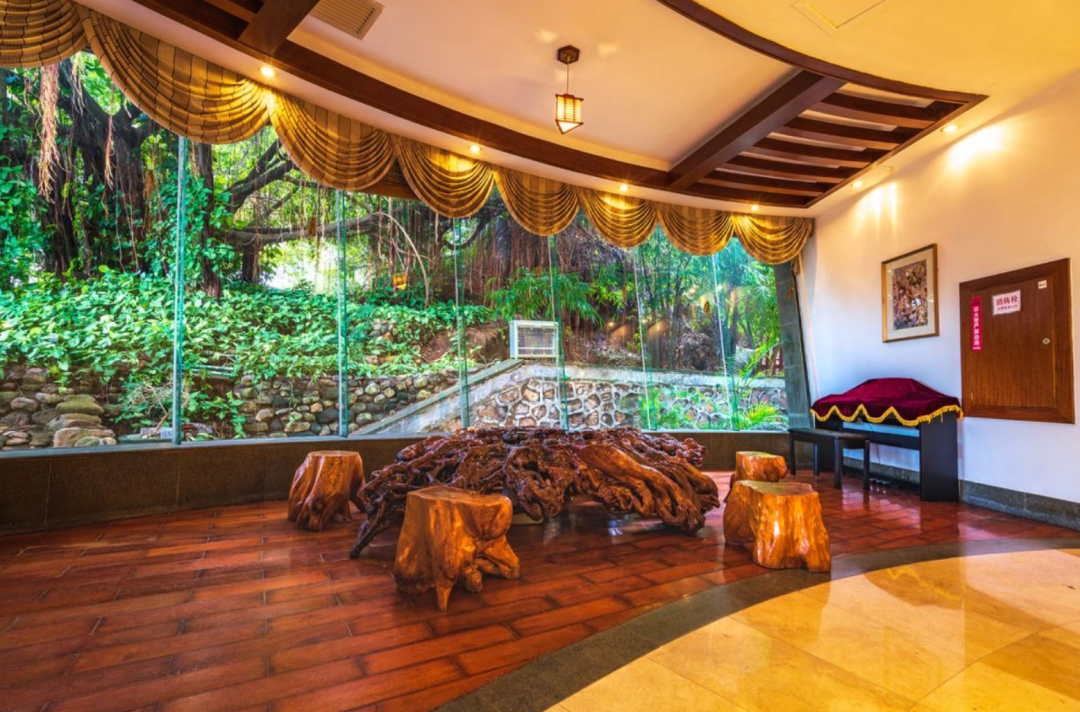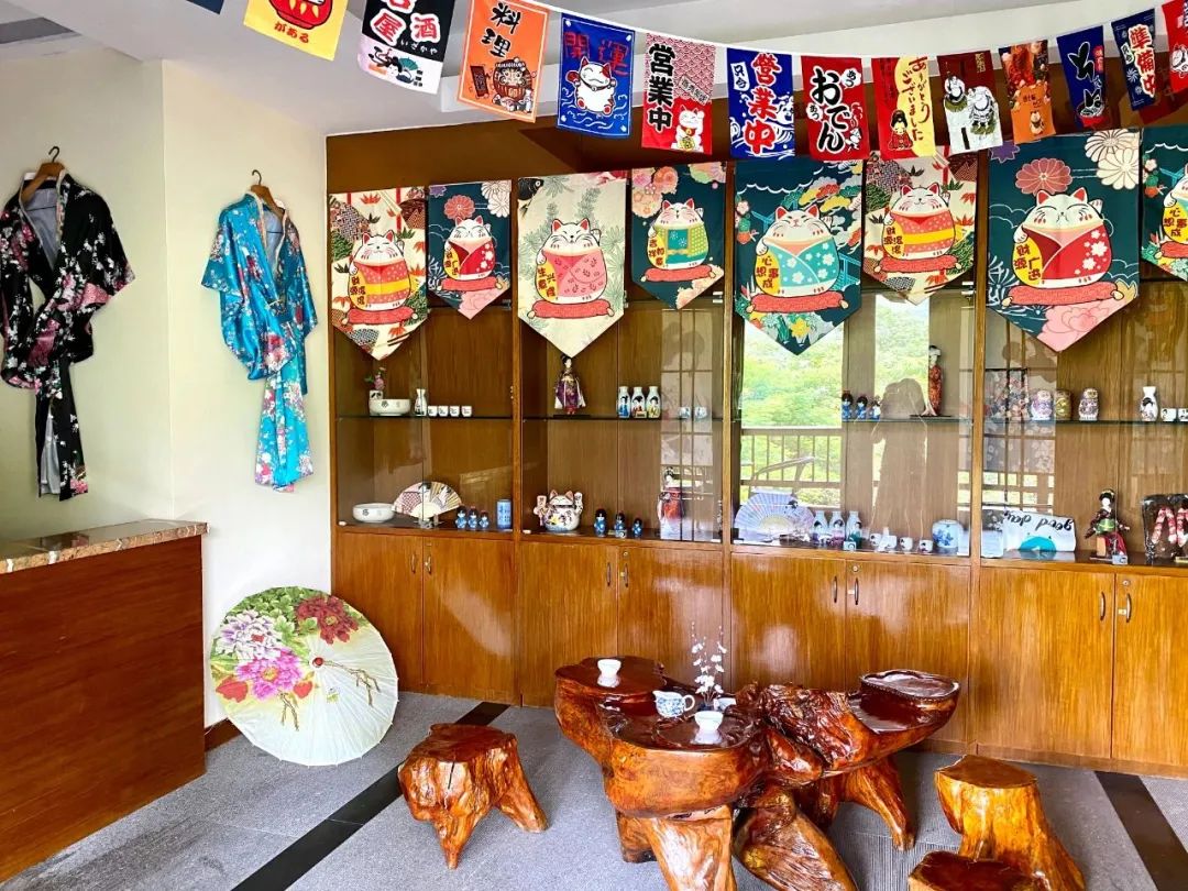 皇家SPA酒店的东瀛阁日式风吕别墅,四周群山环绕,推开窗门视线与翠绿山林只有一窗之隔。雅致的场景布置让人有种穿越到日本京都的感觉。