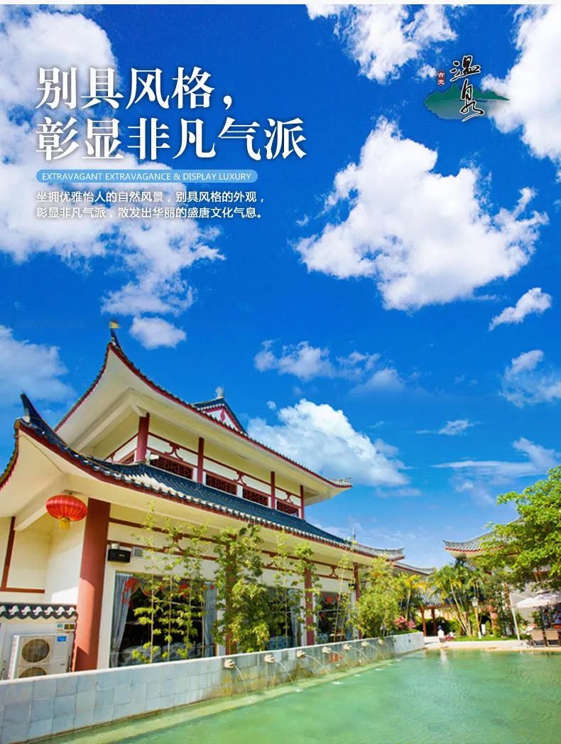 套餐包含:自助早餐,私家汤池、VIP通道无限次通往温泉谷、自动麻将、酒店云亭爬山径,古兜山泉水世界+星球银河滩。
