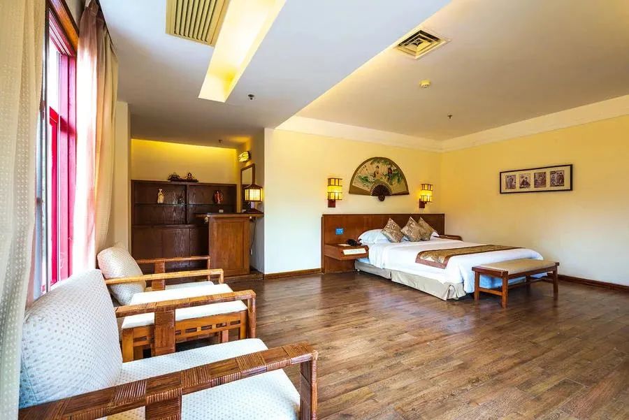 四合院统一为豪华唐代中式设计,古典与雅致相结合,既有古风感也不落现代风格。房间均配备麻将和私家庭院温泉,度假开派对都能兼顾。