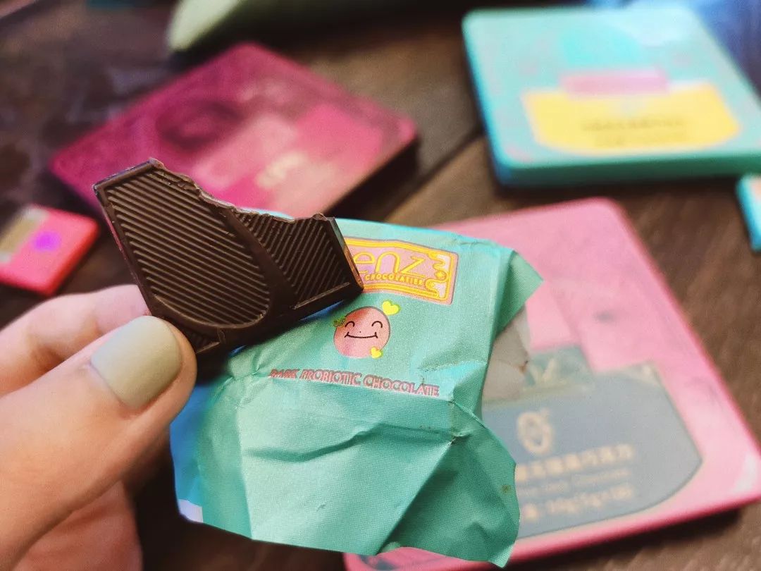 它家配方比较纯粹,属于巧克力里的“短保”—才90天,我每次一拿到就立刻放冰箱,冻了之后外皮硬硬的,冷嗖嗖的,一咬里面又甜又软,耐思!
