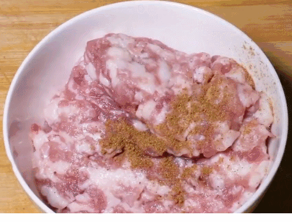1、绞肉加入十三香、老抽搅拌均匀腌制5分钟;