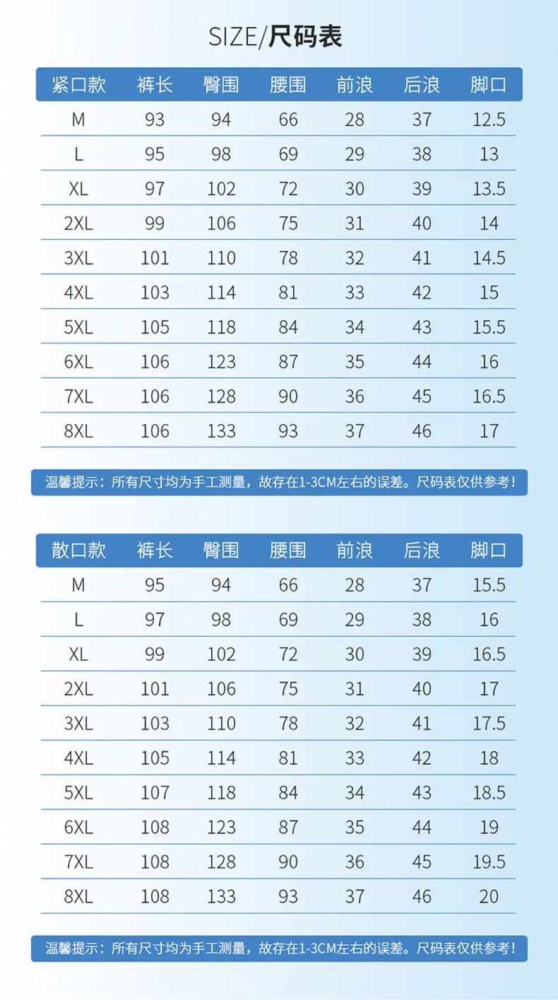 有直筒和束口两种裤脚可选,可根据个人喜好选择下单,满足你的不同穿搭需求,让你“裤爽”整个夏日!