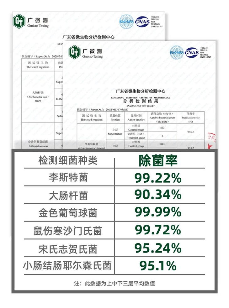 根据权威机构杀菌报告,李斯特菌杀菌率达99%。