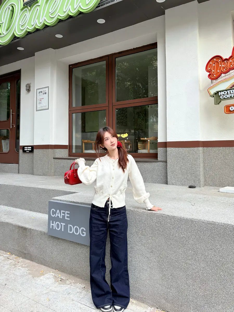 自带柔光滤镜的针织衫~可以内搭也可以当开衫外套,尊嘟超级显嫩~长度不会压个子!显高+10cm!!!