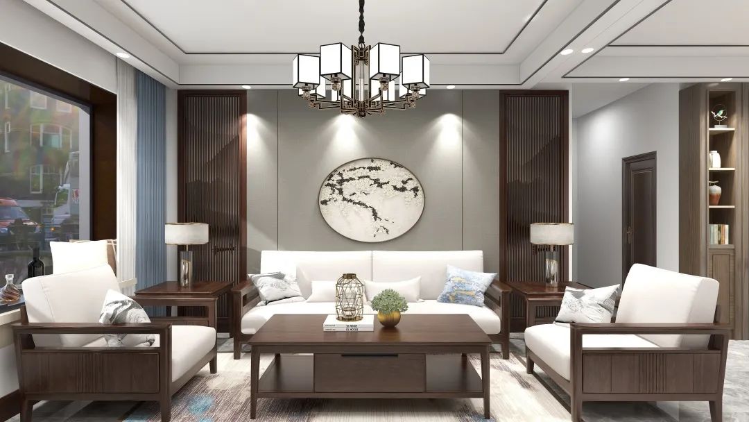 客厅作为会客之所,是重中之重,是最彰显主人气质与品位的地方。宁静系列高端实木,宽敞气派的客厅装点墨梅意境的挂画,方寸之间尽显优雅。北美黑胡桃沙发配以栅格化背景墙,不仅造型别具一格、层次分明,更在吊顶和灯饰“辅佐”下愈加明媚闪耀。
