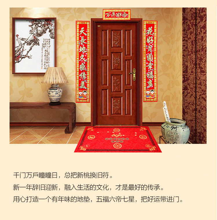 尽量避免两门对冲的格局,若大门正对邻居门,最好使用遮挡物,如屏风或门帘在空间上进行缓解,门上贴福字门神贴或让门户经常关闭以阻挡不好的能量进门,也可摆放一些大叶的植物,如金钱树、发财树、富贵竹等,同时可悬挂富贵大罗盘、吉祥福禄、铺上富贵门垫来调节它们的危害。