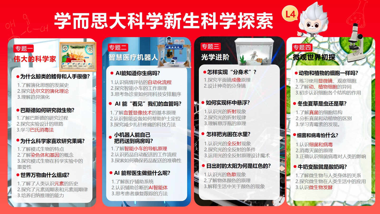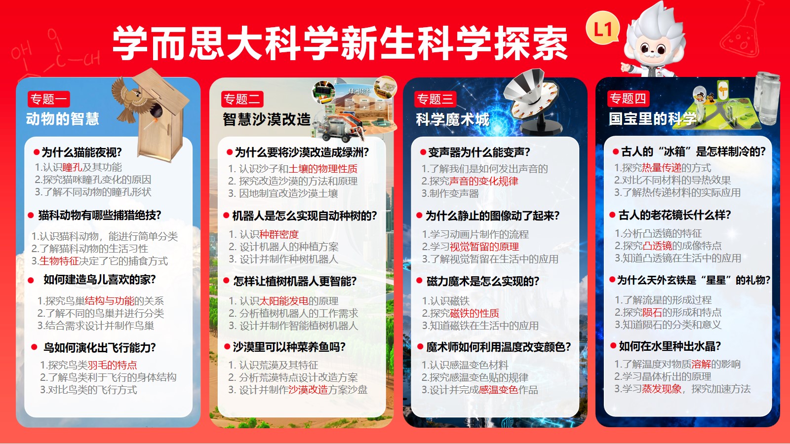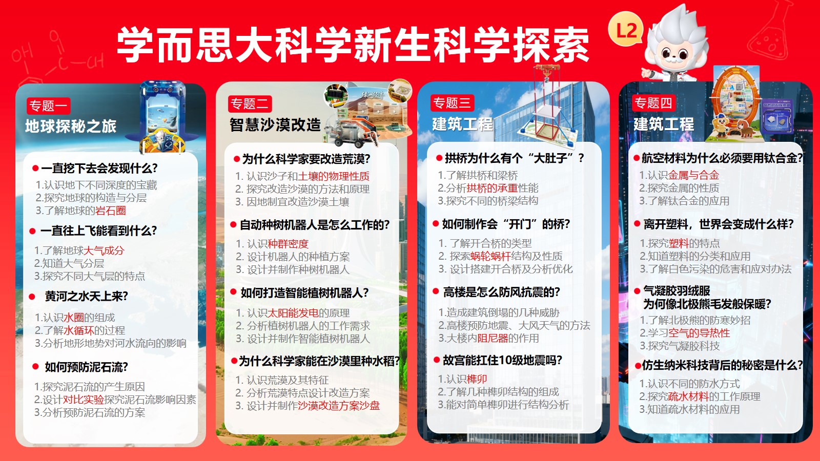 L2,也就是二年级的孩子,会探寻地理、人工智能、物理与材料的四大科学主题